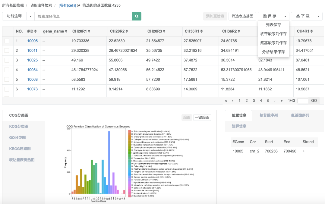 功能、序列、表達(dá)檢索基因/共表達(dá)趨勢(shì)篩選差異基因/PCA、進(jìn)化樹挖掘基因結(jié)構(gòu)