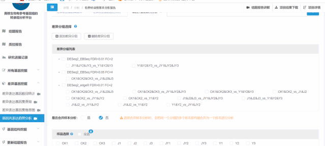 DEseq2軟件適用于有生物學(xué)重復(fù)的項(xiàng)目,edgeR適用于無(wú)生物學(xué)重復(fù)的項(xiàng)目,選擇第一個(gè),系統(tǒng)會(huì)自動(dòng)識(shí)別項(xiàng)目類(lèi)型選擇對(duì)應(yīng)的軟件