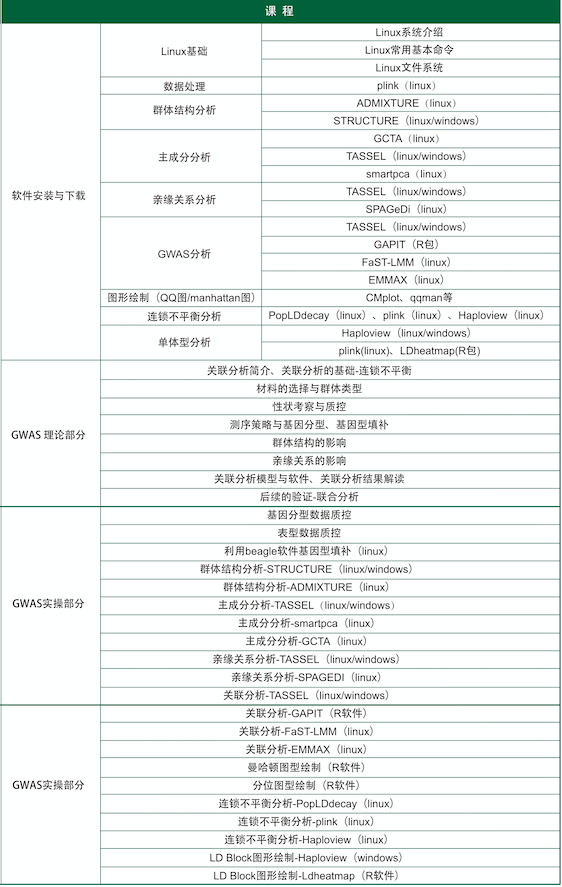 3、群體類(lèi)課程:GWAS+遺傳進(jìn)化課程+重測(cè)序分析課程(可組合:零基礎(chǔ)R語(yǔ)言繪圖+生信入門(mén)+比較基因組+基因家族分析課程)